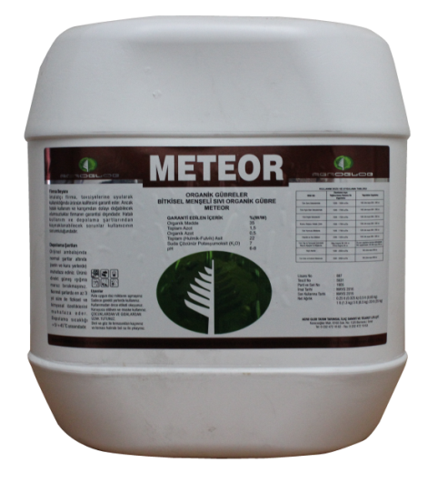METEOR - это органический регулятор почвы, содержащие гуминовые и фульвовые кислоты. При использовании через определенные промежутки времени от посадки растения он регулирует отрицательный воздушный и водный баланс, который может возникнуть для корней в почве, и обеспечивает образование кислородсодержащей среды для корней, а удлинение корней увеличивает образование корневых волосков. Это позволяет питательным веществам, получаемым удобрением, удерживаться на органических поверхностях гуминовой кислоты, позволяя растениям максимально использовать эти питательные вещества. METEOR продолжает разлагаться, пока он находится в почве. Оно делает его возможным впитать по больше элементов не полученных из почвы высокого или низкого уровня pH из за естественного процесса хелатирования. Оно обеспечивает корни для достижения кислорода путем предотвращение слоя слизи который может произойти на поверхности почвы. Уменьшает частицы глины и разрыхляет почву. Предотвращает испарение в песчаных почвах и уменьшает потерю воды. Ускоряет развитие с балансирующим эффектом на всех почвах, продлевает срок хранения овощей и фруктов.